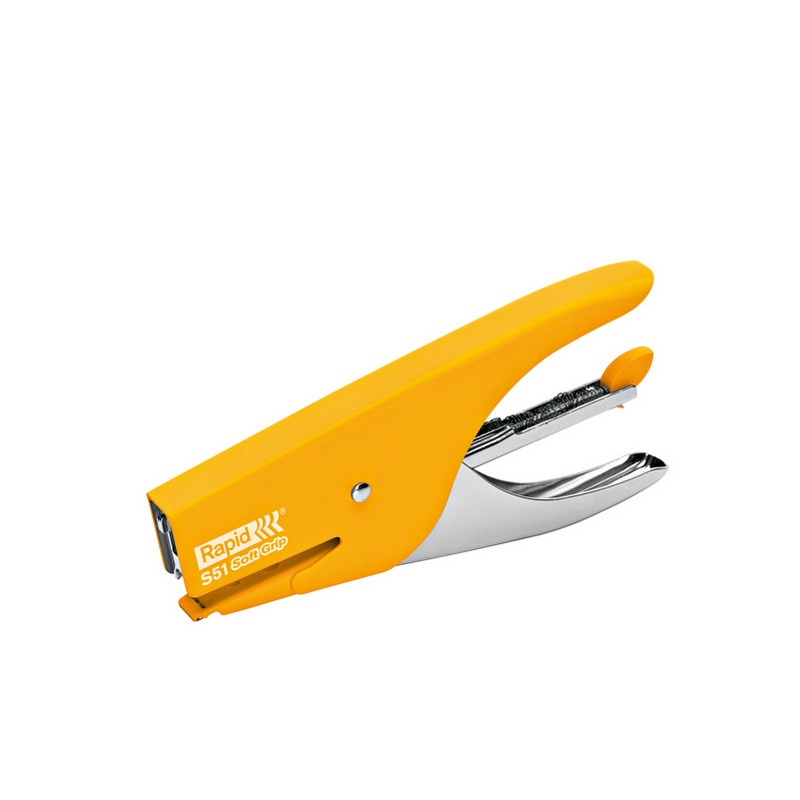 Cucitrice in acciaio con trattamento gommato che la rende piacevole al tatto e sicura nell'impugnatura. Capacità carica: 200 punti. Profondità cucitura 42mm. Capacità di cucitura fino a 15fg. Utilizza punti Rapid 21/4.
