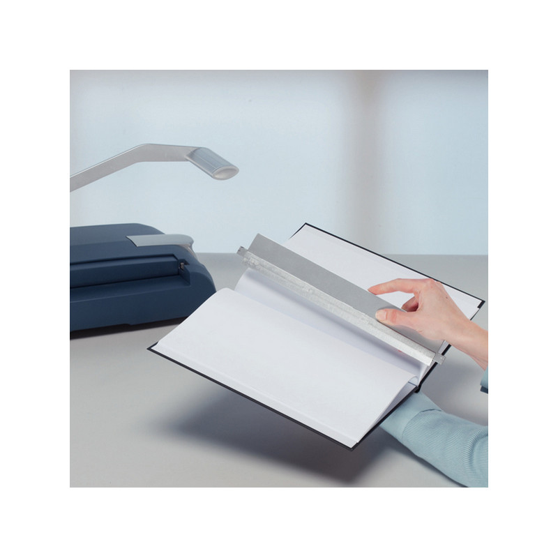 Il de-binder e' necessario per aprire le copertine rilegate e poter modificare il contenuto aggiungendo o rimuovendo le pagine. Le copertine possonon essere aperte e richiuse fino ad un massimo di 3 volte. Dimensioni 50x7x340mm.
