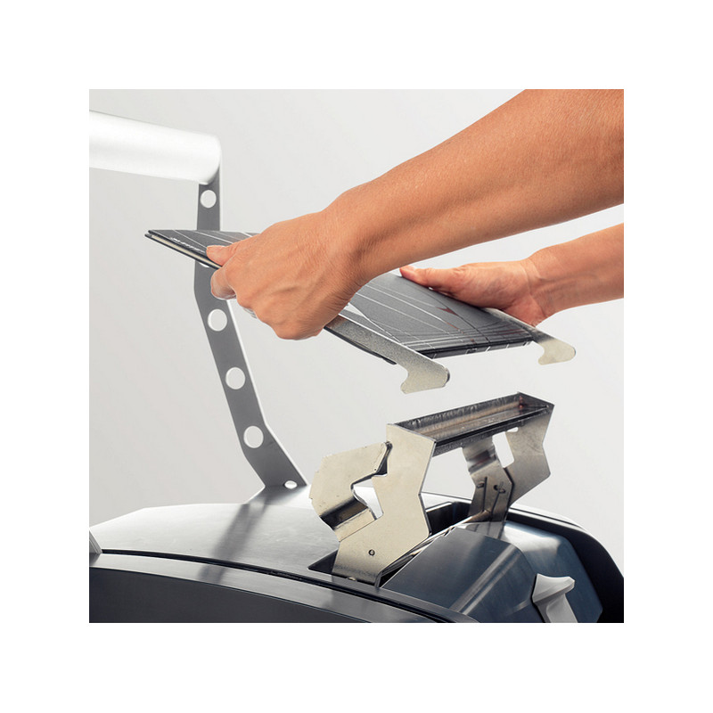 Il de-binder e' necessario per aprire le copertine rilegate e poter modificare il contenuto aggiungendo o rimuovendo le pagine. Le copertine possono essere aperte e richiuse fino ad un massimo di 3 volte. Dimensioni l321x h184x p 77mm.