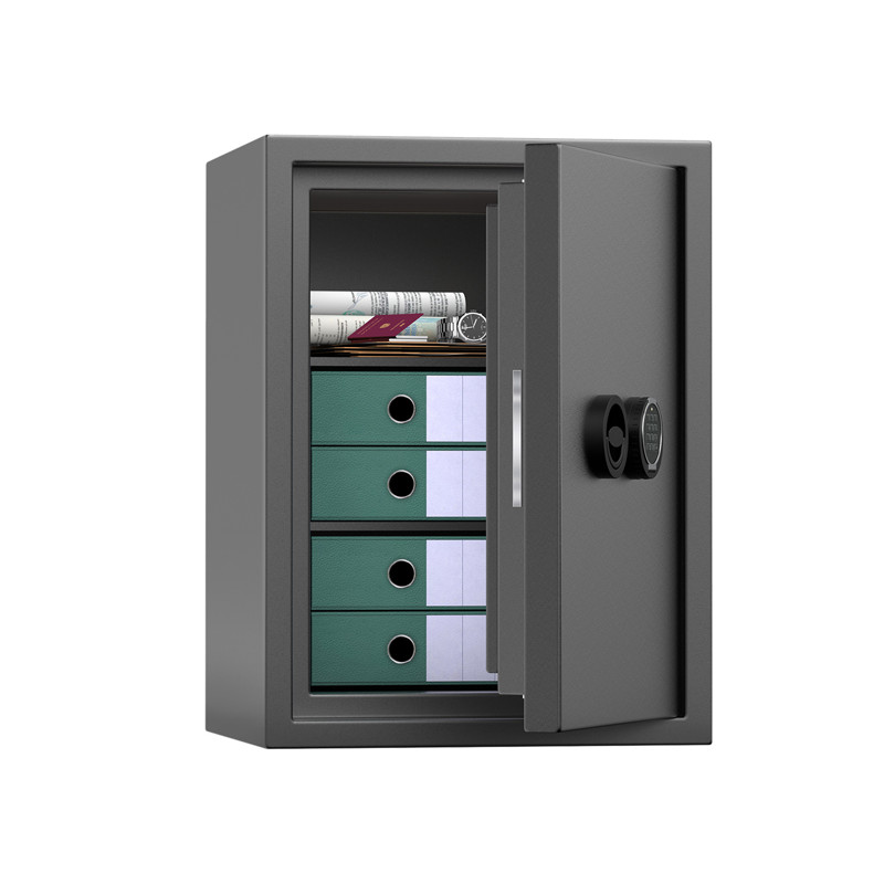 Armadi di sicurezza Certificati EN 15659 LFS30P – 30 minuti; Certificati allo scasso EN 14450 Grado S2. Importo minimo assicurabile: Denaro Euro 5.000 – Beni e Valori Euro 9.000. Serratura elettronica Wittkopp Primor, certificata VdS Classe 2. Apertura della porta a 90° tramite cerniere interne. Porta a tripla parete e corpo a doppia parete riempiti con materiale ad alta resistenza allo scasso. Meccanismi interni protetti con piastra di acciaio al manganese anti-trapano. Standard con cerniere a destra. Apertura porta a 180°. Piastre di chiusura indipendenti sui tre lati di apertura. Ripiani interni regolabili in altezza. Colore grigio scuro. Predisposta per il fissaggio al pavimento ed al muro. Materiale di fissaggio incluso. Misure esterne LxPxH: 523x475x698mm. Sporgenza della maniglia da aggiungere in profondità 32 mm. Misure interne: LxPxH: 403x310x575mm. Peso: 110kg Capacità; 72lt. Nr ripiani: 2. Serratura elettronica.
