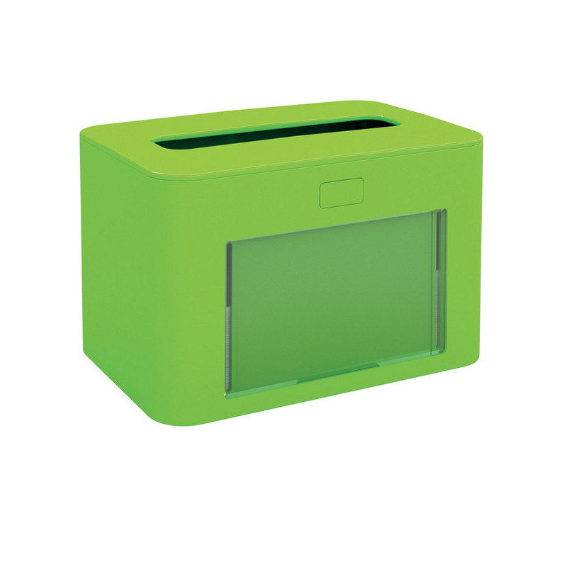 Dispenser per tovaglioli interfogliati realizzato in plastica antibatterica con coperchio leggermente inclinato per favorire lo scivolamento verso l'esterno dei liquidi che accidentalmente potrebbero cadere sul dispenser. Totalmente ermetico protegge i tovaglioli al suo interno. Dotato di finestra per contenere la propria comunicazione (logo, immagine, claim ecc.). Lavabile in lavastoviglie. Dimensione: 20x13,3 - H12,6cm. Contiene una clip di tovaglioli.