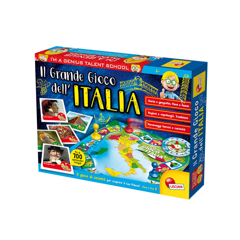 Sei pronto per un entusiasmante viaggio in Italia? Scopri tante curiosità sul nostro paese sfidando i tuoi amici in un'emozionante gara a quiz..anzi a "foto-quiz"! Per vincere, devi rispondere alle domande e completare per primo il tuo puzzle-segnapunti. 2-4 giocatori. Età consigliata: 6+
