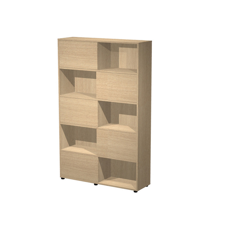 Libreria alta a 5 ripiani con 5 ante scorrevoli. Struttura e ante in truciolare nobilitato melaminico antigraffio ed antiriflesso spessore 18 mm. Piedini regolabili.