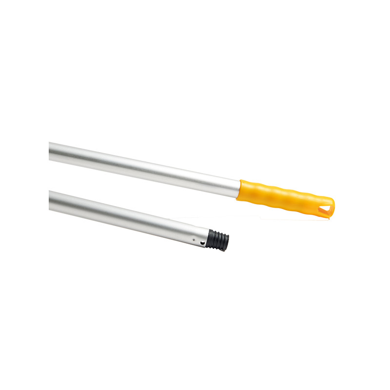 Manico in alluminio con impugnatura in PPL e terminale con vite e foro. Diametro 23mm e 150cm. Sistema colore per prevenire la contaminazione batterica tra diversi ambienti.