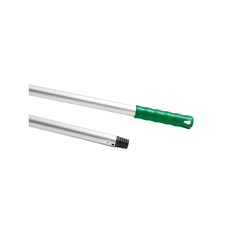 Manico in alluminio con impugnatura in PPL e terminale con vite e foro. Diametro 23mm e 150cm. Sistema colore per prevenire la contaminazione batterica tra diversi ambienti.