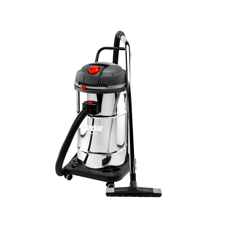 Aspirapolvere e liquidi professionale con 2 motori ad alta efficienza e sistema aspirante con raffreddamento by-pass. Sistema di pulizia del filtro. Fusto in acciaio inox. Sistema antielettrostaticità. Carrello antiurto e valvola a galleggiante. Cavo di alimentazione 7,5 m e ruote antitraccia. Tubo scarico liquidi. Potenza: 2400W/220/240 V~50/60 Hz. Dimensione:96x44x46cm.