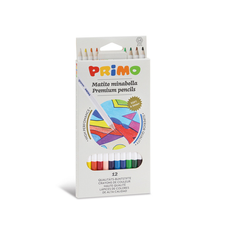 Matite colorate esagonali laccate, di qualità superiore, in scatola cartone, 12 colori. Le matite colorate sono l'essenza dell'espressione creativa. Belle da mettere tutte nell’astuccio o tenere sul tavolo dentro un bicchiere. Per tutte le esigenze e per tutte le età. Certificate FSC™. Matite colorate esagonali di alta qualità con mina più grande, resistente e ricca di pigmento. Il colore delle Minabella è pieno, morbido e di lunga durata. I segni possono essere sovrapposti ed incrociati ad ottenere morbidi effetti di chiaroscuri. Facilmente temperabili. Adatte a tutti i tipi di carta.