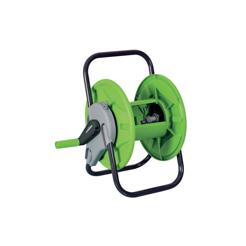 La struttura di supporto dell'avvolgitubo è in acciaio verniciato nero. Il tamburo, gli inserti telaio e la manovella in materiale plastico di ottima qualità. In dotazione due raccordi per attacchi tubo. Dimensioni: H44 x P40 x L33cm. Puoi completare l'avvolgitubo con il tubo cod. 91956 e il set raccordi e lancia cod.91958.