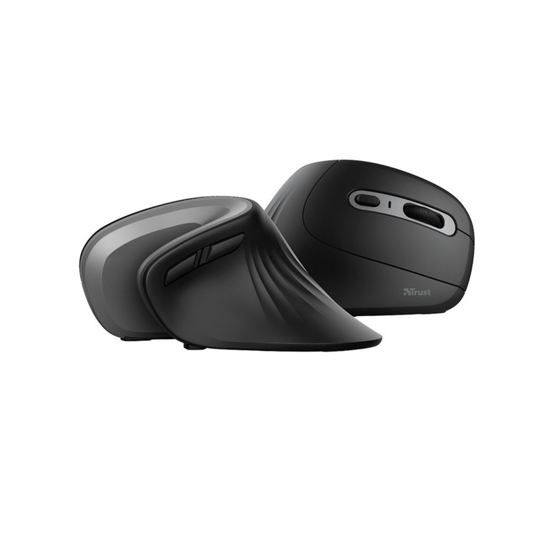 Mouse wireless con design ergonomico verticale. Funziona in pieno comfort per periodi prolungati, prevenendo al tempo stesso lesioni al braccio e al polso. Forma esclusiva, progettata per adattarsi a mani di ogni forma e dimensione. Leggero e sagomato in vista del comfort, con rivestimento in gomma per una presa perfetta. Angolo verticale di 60° per una posizione perfetta del polso. 2 pulsanti azionabili con il pollice: avanti e indietro nel browser. Pulsante di selezione velocità (600/1200/1600 DPI). Microricevitore USB riponibile. Portata segnale wireless: fino a 10 metri. Interruttore di accensione/spegnimento.