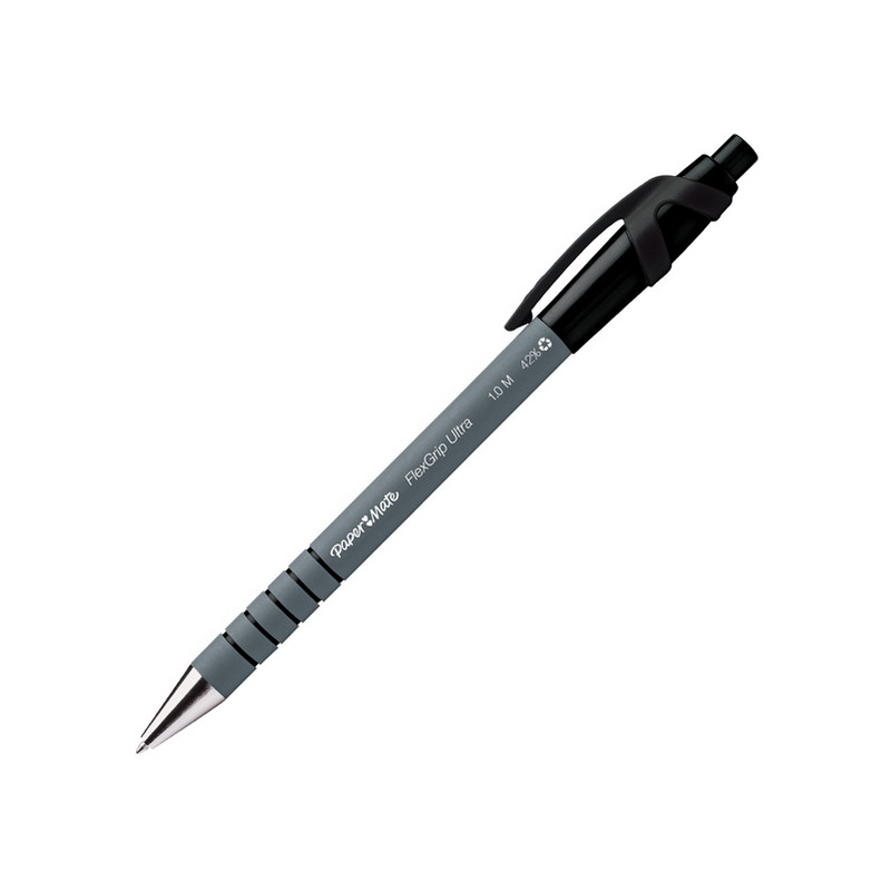 Penna sfera a scatto con fusto gommato, impugnatura con scanalature ad anello antiscivolo, per un migliore comfort durante la scrittura. Prodotta in materiale riciclato al 42% (escluso materiale di ricambio). Inchiostro Floating ball per una scrittura scorrevole. Fusto del colore dell'inchiostro. Punta 1,0mm. Colore : nero.