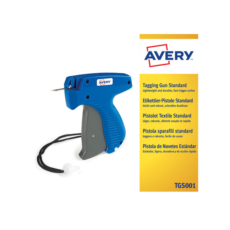 Design ergonomico, leggera e resistente. Facile da usare. Utilizzando la pistola sparafili Avery e i suoi accessori, puoi applicare cartellini e prezzi ad una ampissima gamma di tessuti e oggetti soffici in modo veloce e efficiente. Disponibili nella stessa gamma anche un kit di aghi di ricambio e fili a paletta in polipropilene per applicare i cartellini ai prodotti in modo sicuro.