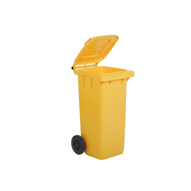 Contenitori per la raccolta differenziata in polietilene ad alta densità di prima scelta (HD-PE) resistenti agli agenti chimici, non attaccabili dai parassiti, non assorbono i liquidi, lavabili e sterilizzabili. Dotati di ruote piene Ø 200mm. Certificato UNI EN 840 per dispositivi di sollevamento a perno e/o a pettine. Contenitore con coperchio da 240 litri. Dimensioni: L58 x P73 x H107cm.
