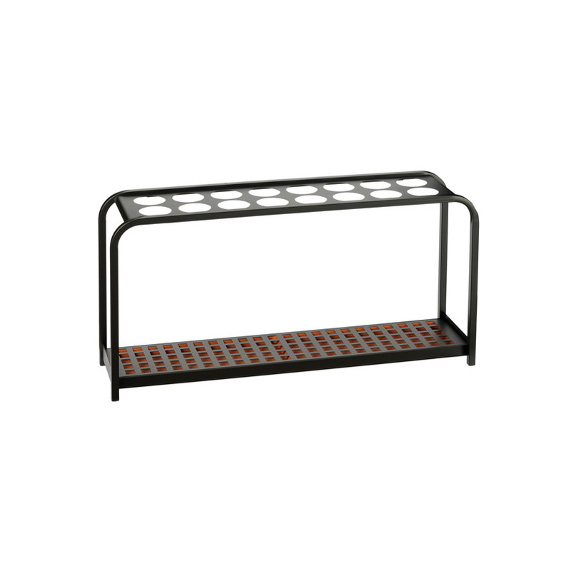 Portaombrelli a 8 o 16 posti,ideale negli ingressi di uffici,negozi e nelle sale d'attesa. Struttura in acciaio verniciato a polveri epossidiche. Bacinella di recupero dell'acqua asportabile. Si consiglia di pulire la superficie con un panno morbido, imbevuto d’acqua o con un prodotto specifico non aggressivo. Non utilizzare detergenti contenenti acetone, metiletilchetone, percloroetano, toluene, tricloroetano, xilene, idrato d’ammonio, idrato di sodio.
