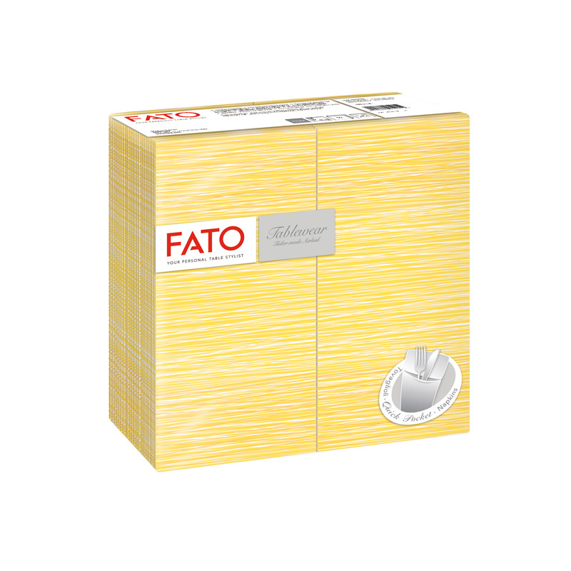 Confezione da 40 tovaglioli portaposate di carta 40x40cm. Coordinati preziosi in Airlaid. Linea Millerighe: mimosa. Tipo di piega: quick pocket. Idoneo al contatto alimentare.