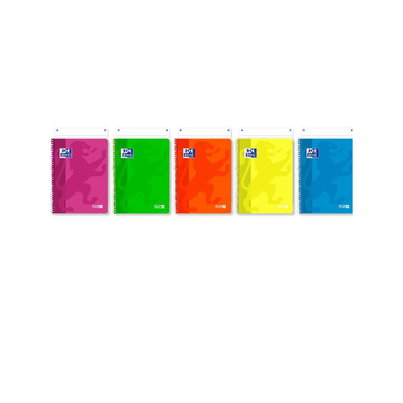 Maxi spiralato A4 con copertina in cartoncino flessibile in 5 colori fluo: fucsia, verde, arancio, giallo e azzurro. Spirale doppia di colore bianco. 120 pagine, carta Optik Paper® da 80 gr. Bianchissima, liscia, satinata e resistente agli strappi; l'inchiostro non attraversa la pagina. Speciali marcatori agli angoli delle pagine, da utilizzare con l'app SCRIBZEE®