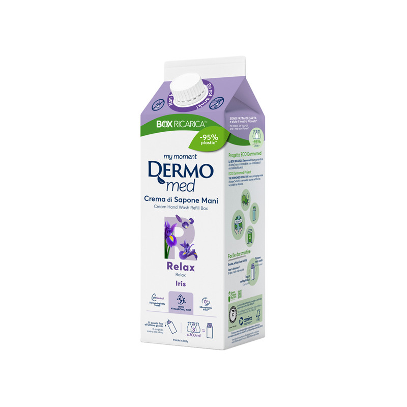 Dermomed crema di sapone mani aiuta a prenderti cura della tua pelle, lasciandola liscia e seducente. Formula arricchita: Acido Ialuronico con proprietà elasticizzanti e glicerina con proprietà emollienti. Contenitore di carta, risorsa rinnovabile, con certificato di riciclabilità Aticelca 501:2019 UNI 11743:2019. Il contenitore deriva da una filiera trasparente e certificata secondo gli standard internazionali FSC, ONG che promuove la gestione responsabile delle foreste del mondo. La sua struttura semi-rigida pratica, maneggevole e resistente garantisce: