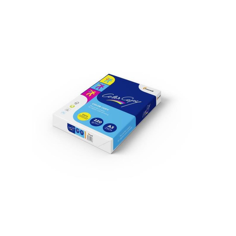 COLOR COPY Color Copy è la carta leader per copie e stampe laser a colori, digitali di originalità e brillanteza uniche: per immagini che a occhio sembrano vere e proprie fotografie Color Copy è un3a carta per stampa a colori con elevato punto di bianco (cie 160) e dotata di una superficie calandrata per una migliore riproduzione dei colori. Idonea alla stampa laser e inkjet. È particolarmente adatta per la stampa di documenti come: presentazioni, direct mailing, manuali, piani aziendali, biglietti da visita e buste. Color Copy è disponibile nei formati A4, A3 e SRA3 e in un ampio range di grammature dai 90g ai 300g. Carta certificata FSC.