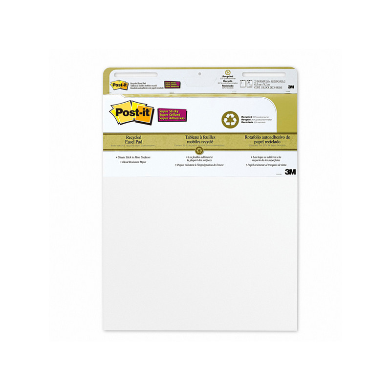 Blocco 30fg bianchi in carta riciclata al 30%. Blocchi da parete con adesivo rimovibile super sticky che aderisce preticamente ovunque (parete, porte, armadi). L'intero blocco puo' essere appeso al muro con adesivi 3M command all'interno della confezione.