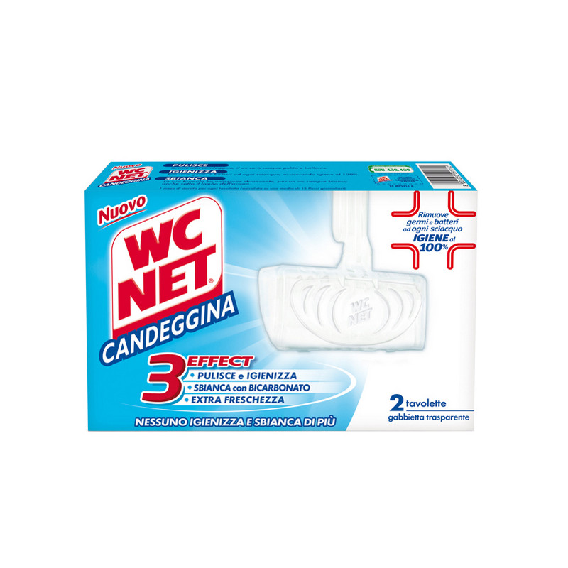 WC Net tavoletta Candeggina rimuove germi e batteri ad ogni sciaquo, assicurando igiene al 100%. Grazie alla sua speciale formula. sbianca il WC anche sotto il livello dell'acqua