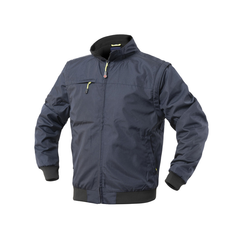 Giubbotto invernale foderato in pile con chiusura anteriore con zip, due tasche inferiori, taschino orizzontale sul petto con portabadge chiuso con zip e tasca multifunzionale interna. Maniche removibili con zip e quattro strisce rifrangenti sul collo. Su ordinazione tutte le taglie da S a 5XL.