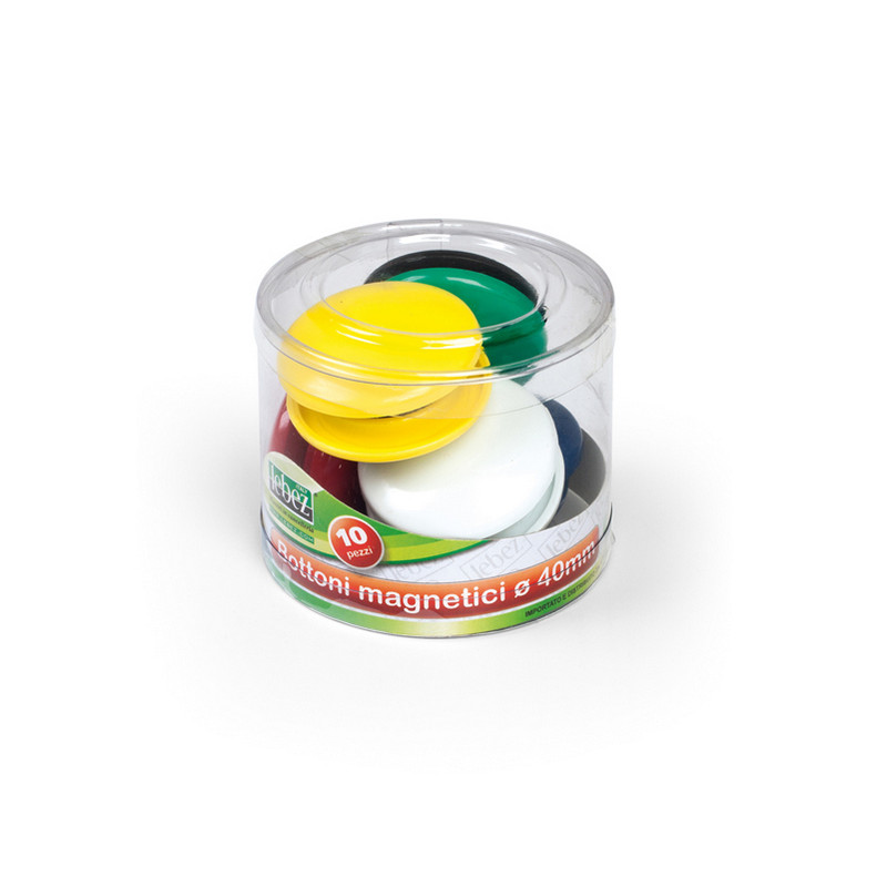 >Cancelleria>Magneti per lavagne>Bottoni magnetici tondi - diametro 4 cm - colori assortiti - Lebez - barattolo da 10 pezzi