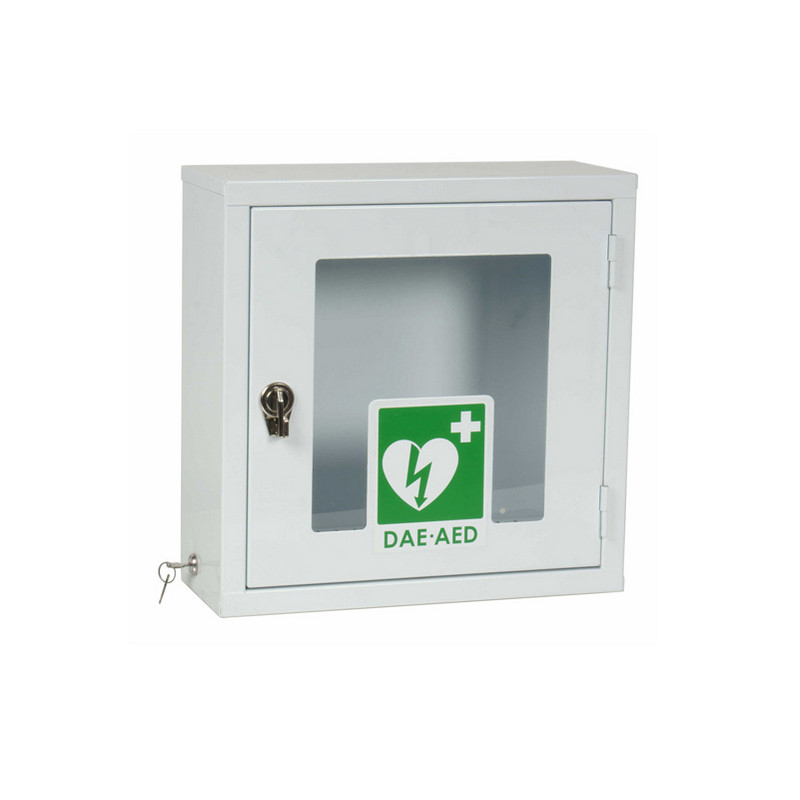 Teca realizzata in lamiera di acciaio al carbonio P02 zincato; verniciatura a polvere di epossi-poliestere RAL9010 bianco; passaggio in galleria termica 180°C. Composta da un anta finestrata, cerniere con perno zincato e apertura 180°. Chiusura a sigillo lucchettabile in zama nichelata; preforata per attacco a parete e su apposita piantana PIA040. Dimensioni: 425x452x160mm; Colore: bianco