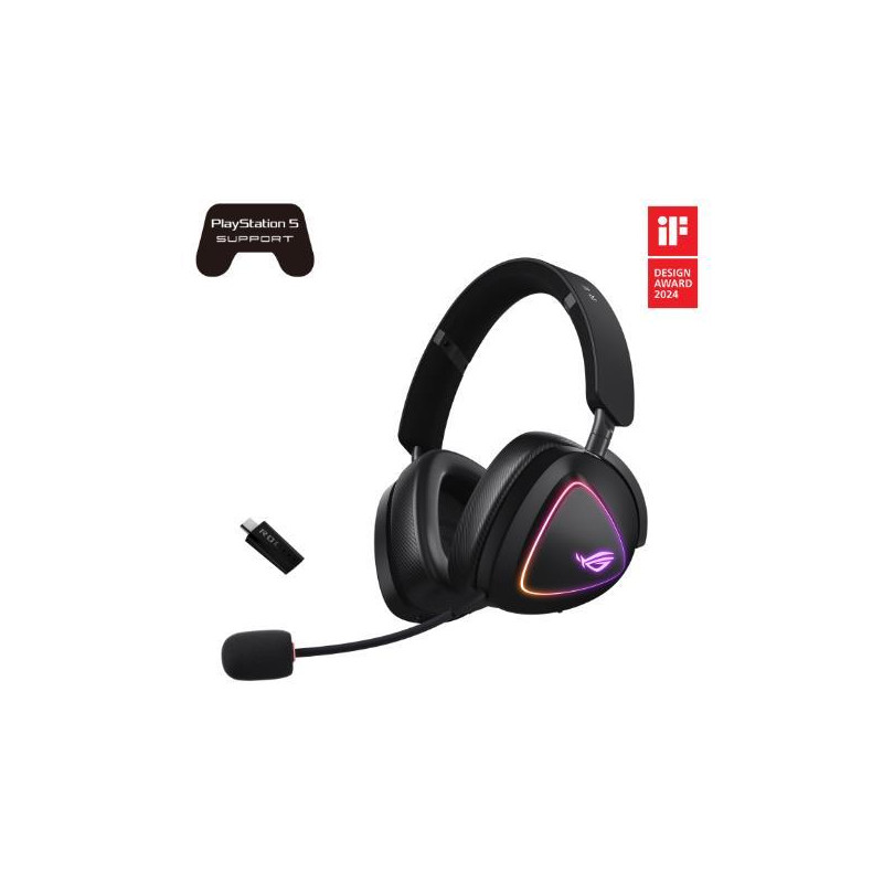 Cuffie da gioco wireless tri-mode con ROG SpeedNova, driver a diaframma placcati in titanio da 50 mm e firma sonora wireless raffinata, microfono ad asta a banda super larga da 10 mm, audio DualFlow, durata della batteria fino a 110 ore, design leggero da 318 g e illuminazione ASUS Aura Sync RGB