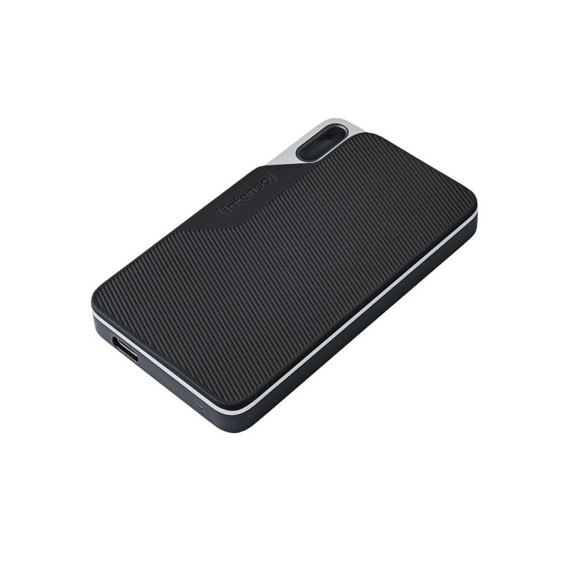 L'Intenso SSD TX100 è progettato per una lunga durata grazie alla sua robusta superficie gommata.