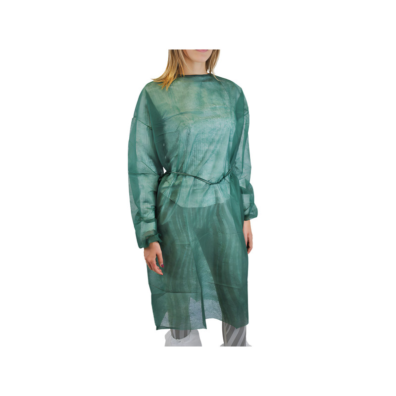 Camice avvolgente in PLP, 18 gr/m2 . Girocollo. Elastico ai polsi. Chiusura posteriore con lacci al collo e laccio singolo in vit. aDPI I categoria. Taglia unica. Per visitatori nei più svariati settori merceologici.