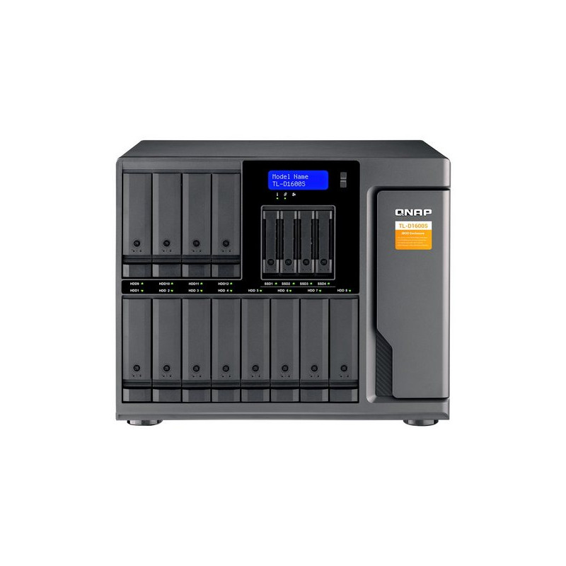 Il TL-D1600S dispone di dodici vani unità SATA 6 Gb/s da 3,5"/2,5" e quattro SATA/SSD 6 Gb/s 2,5" ed è fornito di una scheda QXP PCIe per il collegamento dell'espansione utilizzando un cavo SFF-8088 (o SFF-8644). Fornisce prestazioni di lettura/scrittura affidabili per attività di backup e archiviazione fluide.