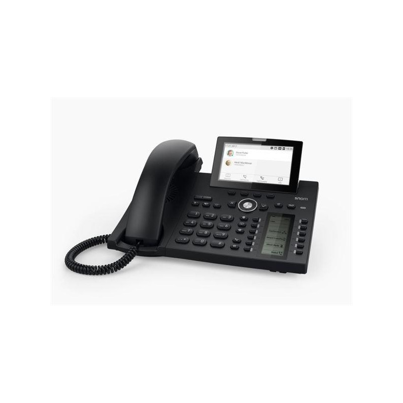 Lo snom D385 è un telefono IP di ultima generazione: con il suo schermo a colori ad alta risoluzione abbinato ad un secondo schermo per la gestione dei tasti BLF e il Bluetooth integrato ha tutte le caratteristiche necessarie per i clienti più esigenti.