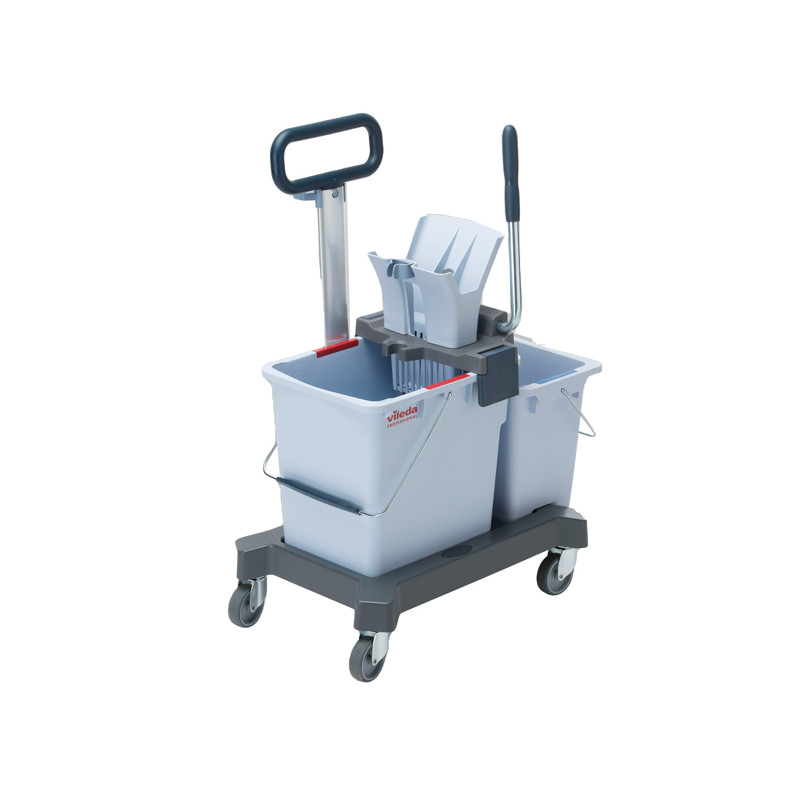 UltraSpeed Pro è l’innovativo sistema di pulizia dei pavimenti a frangia piatta. Semplice, completo e versatile, unisce le elevate performance della microfibra ad un rivoluzionario sistema di strizzatura, per pavimenti asciutti più velocemente. L’esclusiva pressa permette di strizzare i mop senza alcuno sforzo garantendo dei risultati ineguagliabili. Il sistema include un chassis di facile manovrabilità e una pressa USPro con clip porta manico integrate, secchi in plastica riciclata da 25L e 8L, barra di guida. Il secondo secchio da 8 lt. è stato progettato per permettere il montaggio della pressa centralmente o posteriormente. L'esclusivo profilo impedisce il gocciolamento dell'acqua tra i secchi. Dimensioni: 62x38x85cm