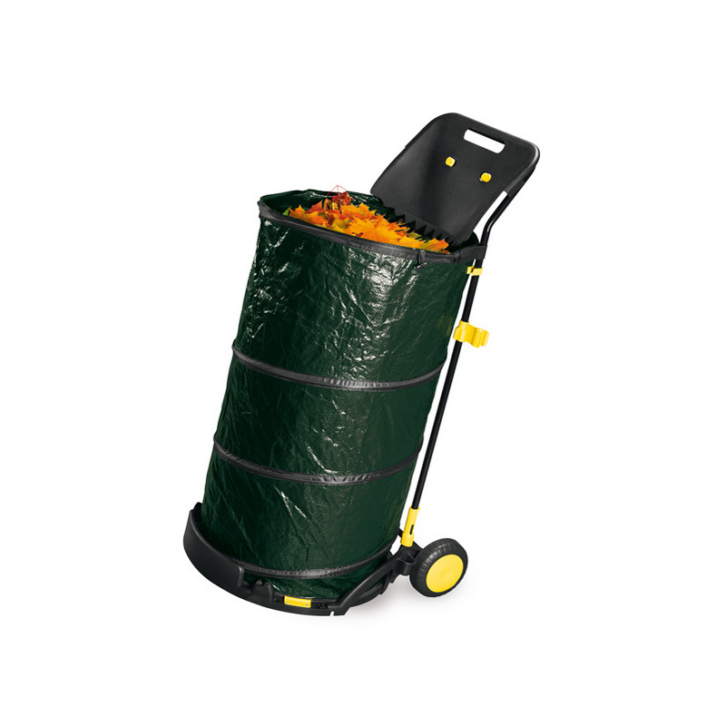 Carrello raccoglifoglie in acciaio verniciato con sacco pop up e pratici ganci per fissare rastrelli su entrambi i lati. Completo di paletta raccogli foglie e ruote robuste per una maggiore mobilità. Capacità 150Lt. Dimensioni: H108 x P52 x L60cm.Articolo destinato ad esclusivo uso domestico. Non adatto ad uso pubblico.