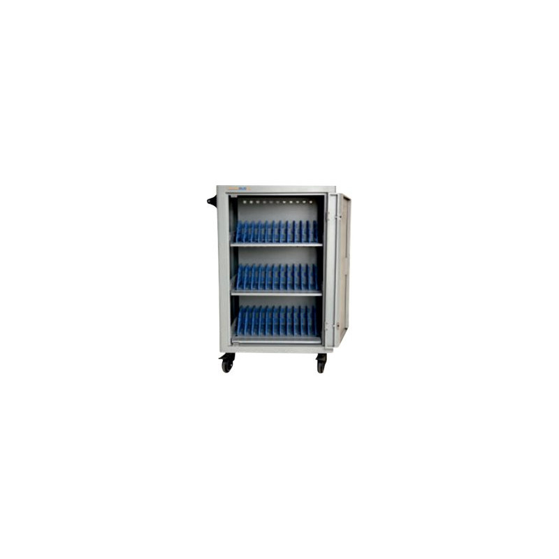 È dotato di ruote con freno e un'impugnatura ergonomica che rende agevole lo spostamento dell'intera unità. La parte superiore del trolley ricarica è completamente piana e può essere utilizzata come supporto per proiettore, stampante o scanner. L'unità di ricarica è realizzata su 3 livelli da 12 dispositivi per ripiano per un totale di n. 36 dispositivi.