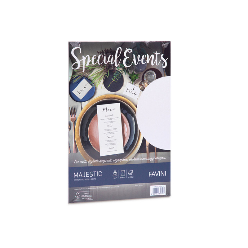 Carta metallizzata Special Events - A4 - 250 gr - bianco - Favini - conf. 10 fogli