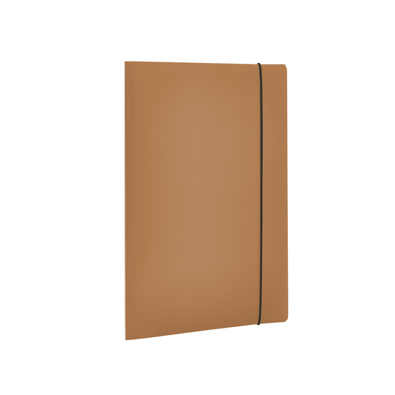 Cartellina a 3 lembi in polipropilene. Contenuto minimo di materiale riciclato post consumo pari al 30%. Confezionamento e imballo privi di plastica. Speaker label in carta 100% riciclata. Prodotto 100% riciclabile. Chiusura con elastico.