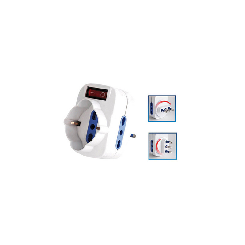 >Materiale elettrico>Prese>Adattatore rotante con interruttore - 2 prese bipasso 2P+T 10/16A + 1 presa Schuko - MKC
