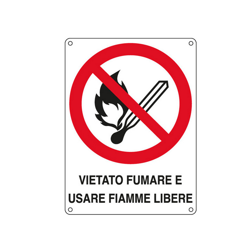 Cartello segnalatore - 16,6x23,3 cm - VIETATO FUMARE E USARE FIAMME LIBERE - alluminio - Cartelli Segnalatori
