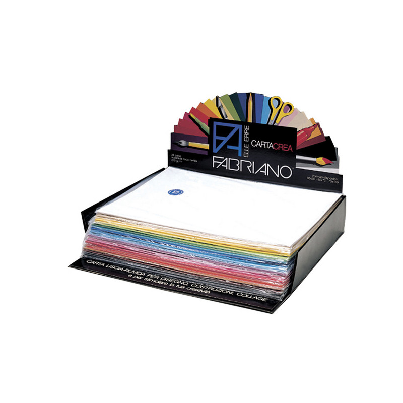 Carta elle erre 220gr due superfici, liscia da un lato e ruvida dall'altro. Per disegno, costruzioni, collage e per stimolare la creativita'. Espositore composto da 25 blister da 10 fogli.
