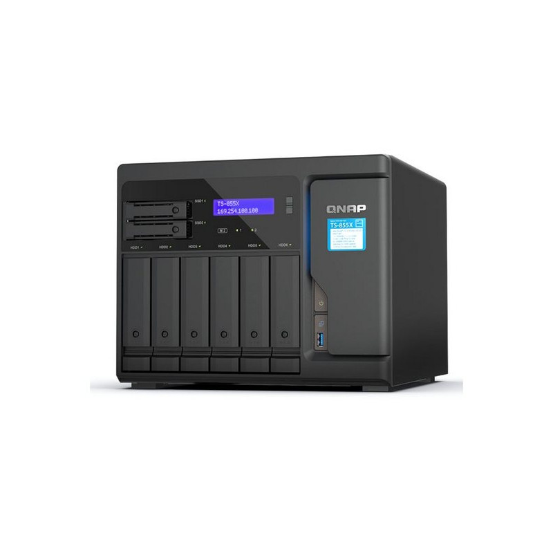 QNAP TS-855X - Server NAS - 8 alloggiamenti - SATA 6Gb/s - RAID RAID 0, 1, 5, 6, 10, 50, JBOD, 60 - RAM 8 GB - 2.5 Gigabit Ethe