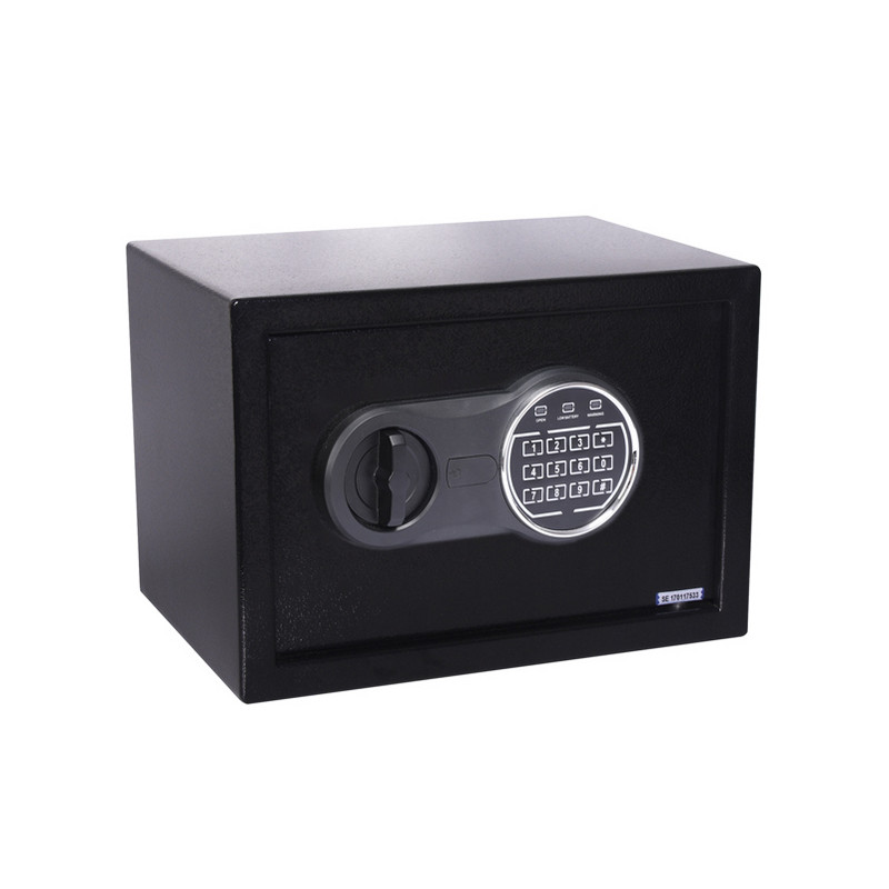 Casseforti di sicurezza per la custodia di oggetti di valore e contanti, con chiusura elettronica + 2 chiavi d’emergenza (ogni cassaforte ha la propria chiave). Verniciatura a polvere termoindurente. Cerniere interne nascoste per una maggiore sicurezza. Tappetino sul fondo. Può essere fissata a pareti in mattone o pavimenti (tasselli inclusi). Codice di sicurezza 3-8 cifre. Colore nero.