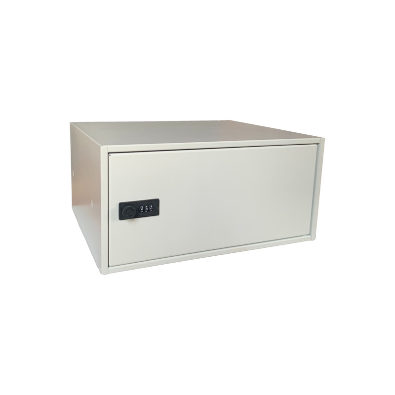 vernice: polvere epoxy poliestere (formulata con pigmento esente da cromo e piombo). Serratura a combinazione meccanica a 3 ruote. Provvisto di fori sul retro e kit di tasselli/viti per fissaggio al muro.Dimensioni esterne: 250x100x230mm; Dimensioni interne:240x90x210mm.
