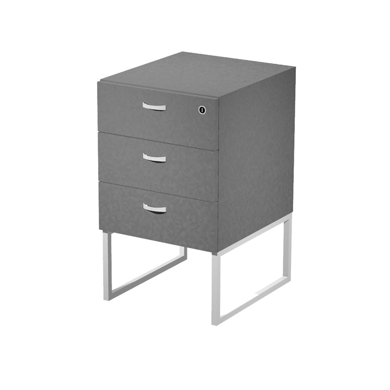 Cassettiera a 3 cassetti con serratura sul primo cassetto, guide metalliche con fermo a fine corsa, fornita montata. Con supporto metal. Dimensione: L41,5xP49,5xH57,6cm.