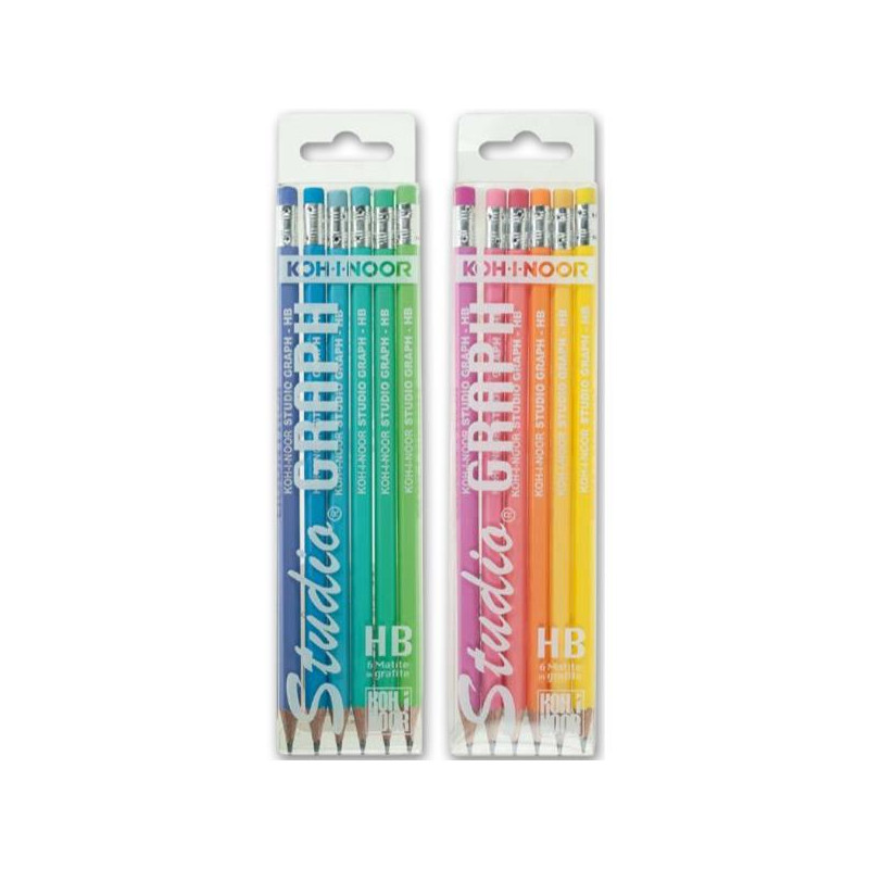 Matite con mina in grafita HB complete di gommino in tinta con il fusto della matita. Mina super resistente da 3,2mm. Facile da temperare.