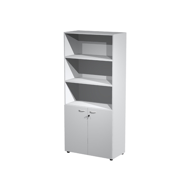 Armadio a 2 ante battenti basse c/serratura. 3 ripiani spostabili + 1 fisso. Dimenzioni: L90 x P45,8 x H200 cm. Linea di armadi componibile particolarmente robusti e stabili, costituiti da struttura alta 200cm e completabili con sopralzo alto 40cm. Grande profondità di 46cm e larghezza di 90 cm. Struttura spessore 18mm. Lato posteriore rifinito da ambo i lati con pannello rigido in spessore 10 mm. Ripiani interni in sp. 25mm. Piedini regolabili per la massima stabilità.