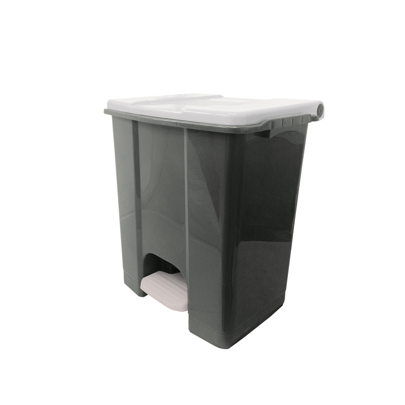 Contenitore in polipropilene plastica riciclata (minimo 70%); sistema d’apertura del coperchio in plastica; ampio pedale nel colore del coperchio per utilizzo conforme al metodo HACCP; maniglia di trasporto posteriore integrata; ruote in plastica per un facile spostamento. Contenitori risultano particolarmente adeguati sia per uso interno che esterno. Dimensioni: 480 × 390 × 550 mm. Capacità: 60lt. La tonalità di grigio del contenitore, essendo realizzato in plastica riciclata, è soggetta a possibili variazioni (grigio scuro o grigio chiaro).