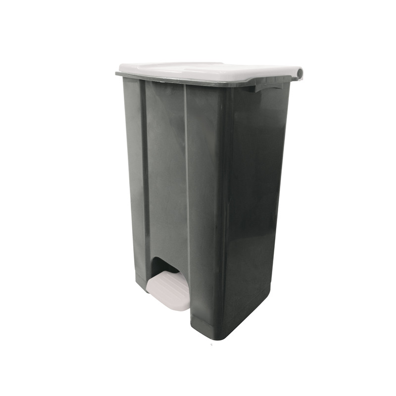 Contenitore in polipropilene plastica riciclata (minimo 70%); sistema d’apertura del coperchio in plastica; ampio pedale nel colore del coperchio per utilizzo conforme al metodo HACCP; maniglia di trasporto posteriore integrata; ruote in plastica per un facile spostamento. Contenitori risultano particolarmente adeguati sia per uso interno che esterno. Dimensioni: 480 × 390 × 750 mm. Capacità: 80lt. La tonalità di grigio del contenitore, essendo realizzato in plastica riciclata, è soggetta a possibili variazioni (grigio scuro o grigio chiaro).