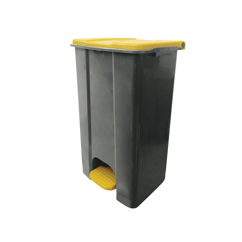 Contenitore in polipropilene plastica riciclata (minimo 70%); sistema d’apertura del coperchio in plastica; ampio pedale nel colore del coperchio per utilizzo conforme al metodo HACCP; maniglia di trasporto posteriore integrata; ruote in plastica per un facile spostamento. Contenitori risultano particolarmente adeguati sia per uso interno che esterno. Dimensioni: 480 × 390 × 750 mm. Capacità: 80lt. La tonalità di grigio del contenitore, essendo realizzato in plastica riciclata, è soggetta a possibili variazioni (grigio scuro o grigio chiaro).