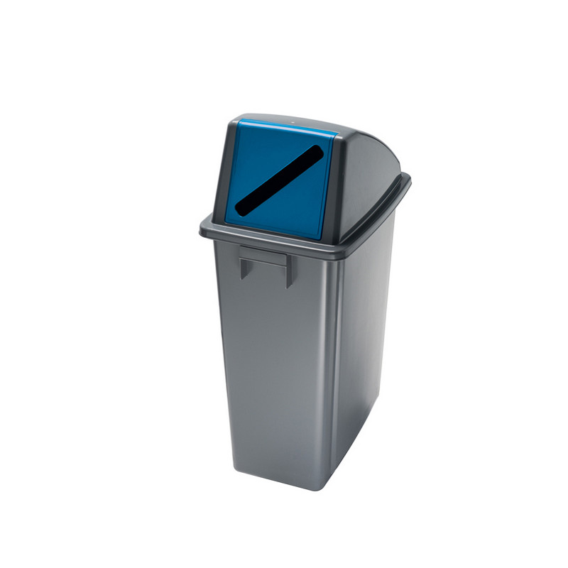 Contenitore in polipropilene ad alta densità da 60Lt con maniglie integrate. Design compatto per un facile collocamento anche in spazi limitati. Forniti con coperchio blu con feritoia per la carta. Dimensioni: L 33 x P 46cm - H 79cm. Pulizia periodica da effettuare con un panno morbido e non abrasivo, imbevuto d’acqua. Detergenti che contengono solventi possono danneggiare il materiale.