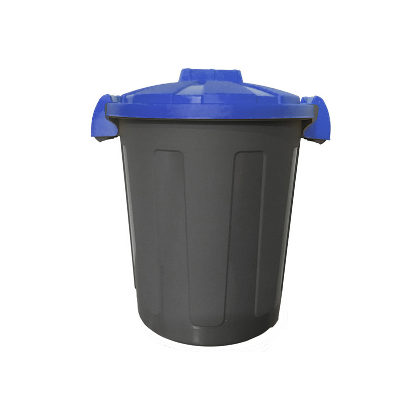 Pratico bidone portari?uti da 25 litri, con coperchio dotato di chiusura a clip. Realizzato in polipropilene (PP) riciclabile 100%. Design moderno, si adatta a tutti gli ambienti. Bidone colore grigio e coperchio blu. Dimensioni: Ø36 x H45cm.